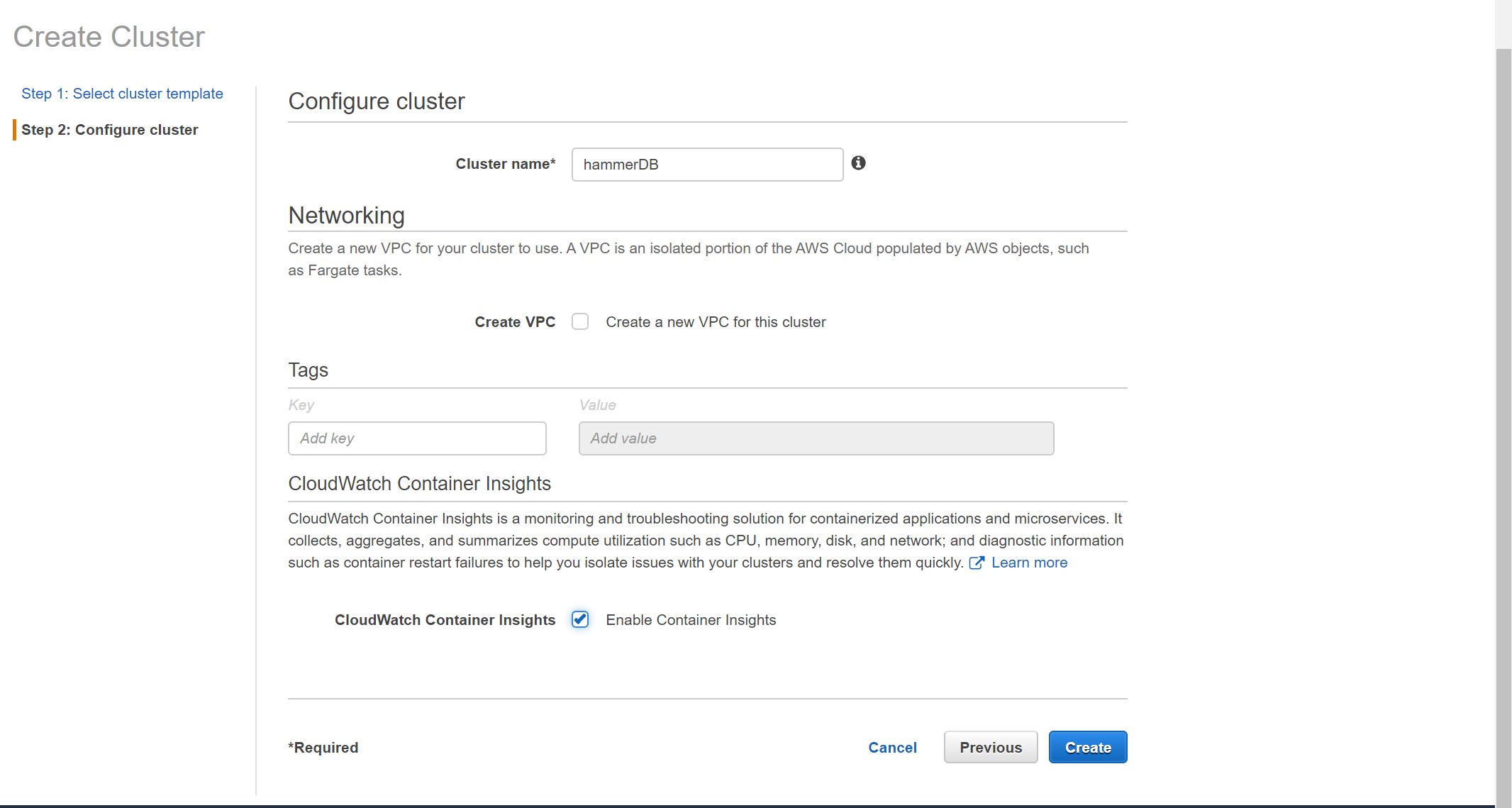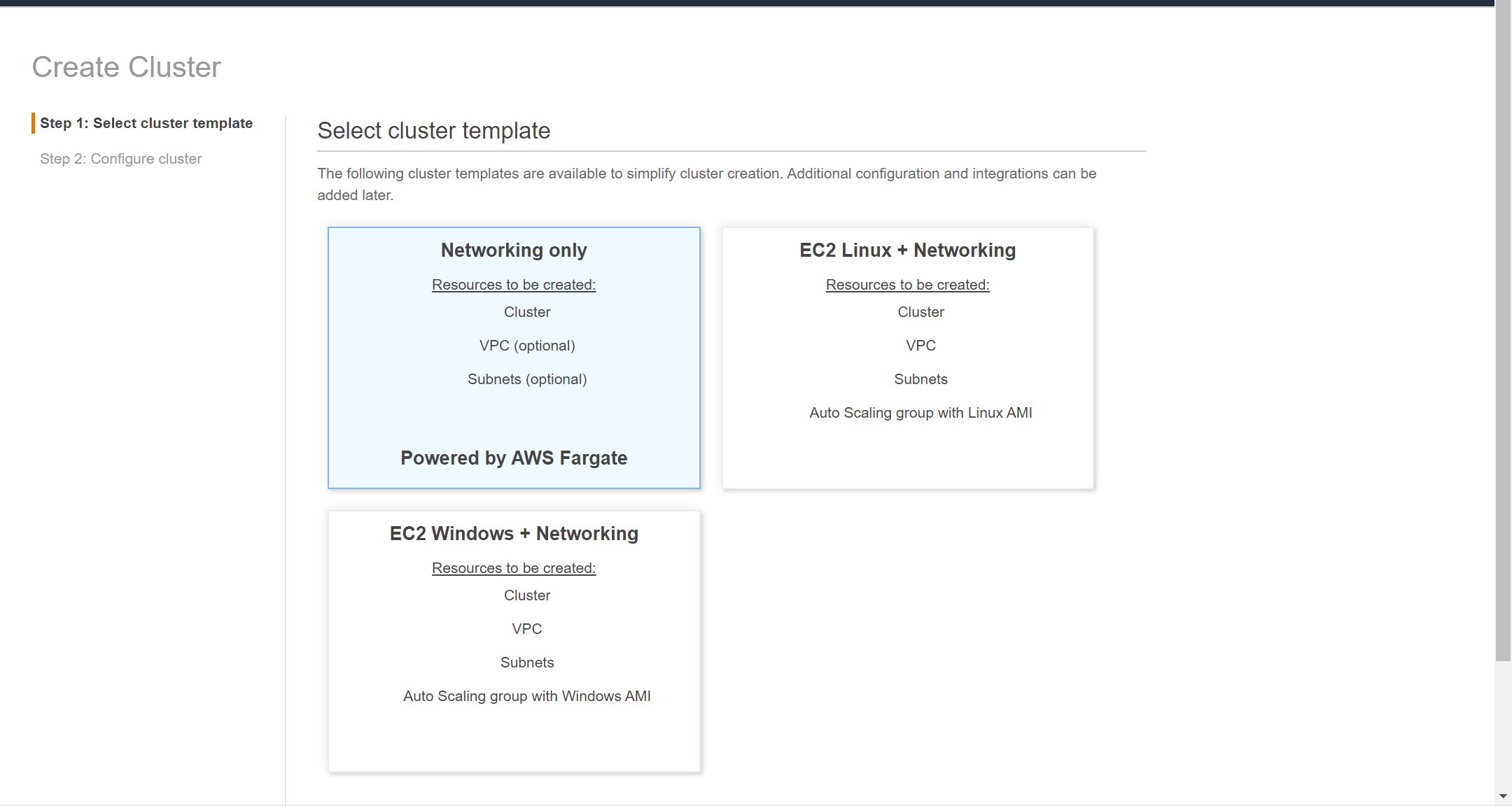 Create an ECS cluster as below:
