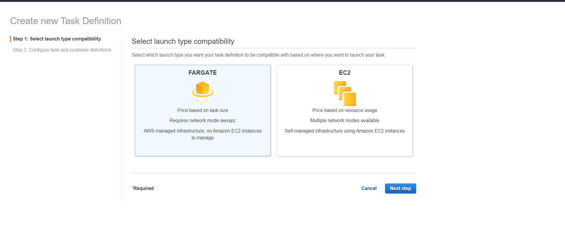 Select Fargate launch type: