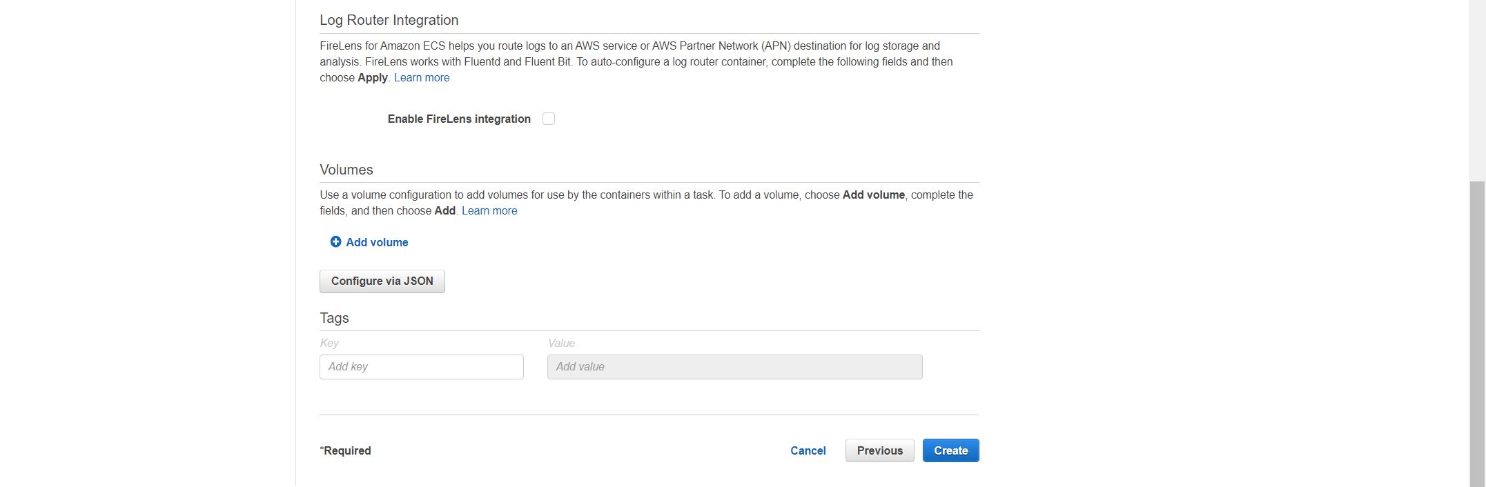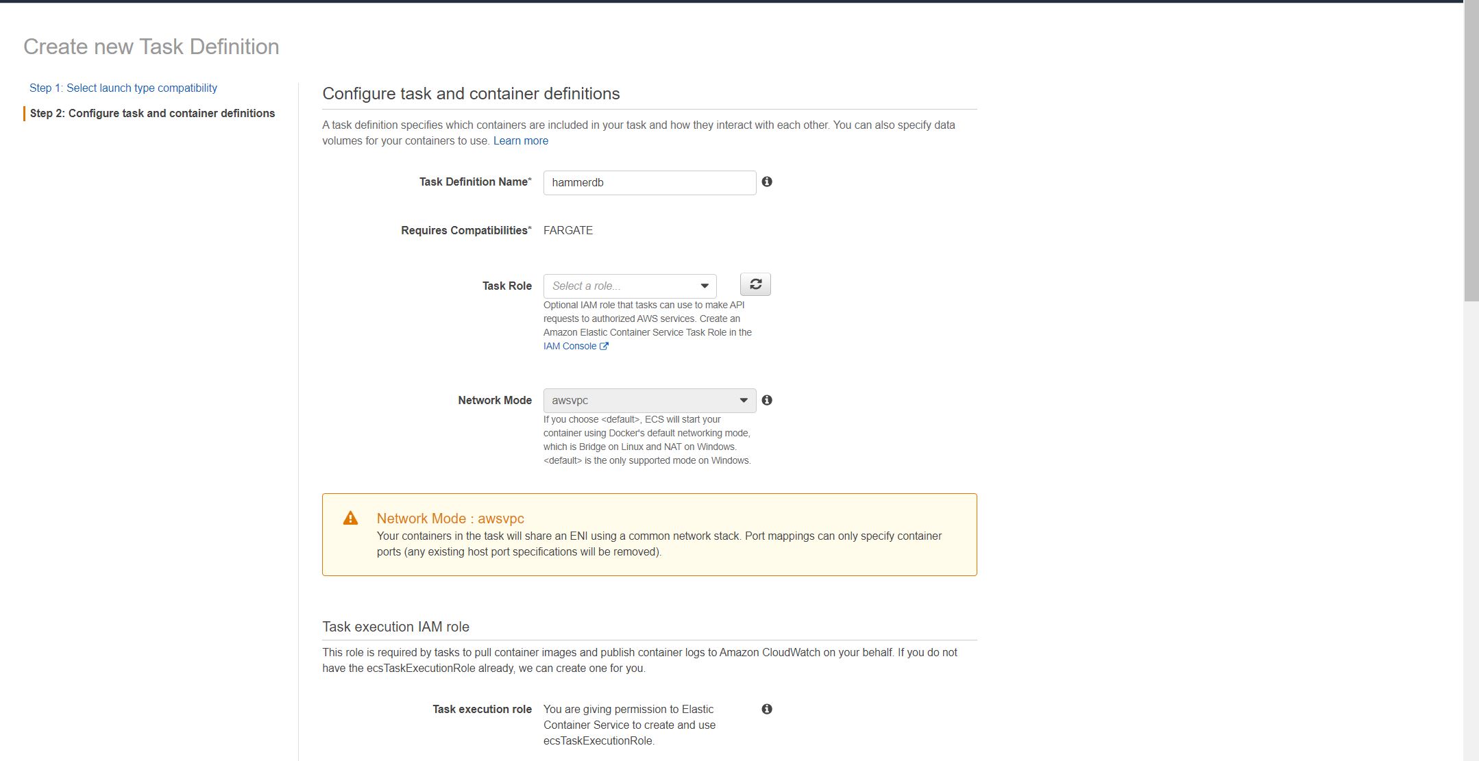 Continue to create task definition:
