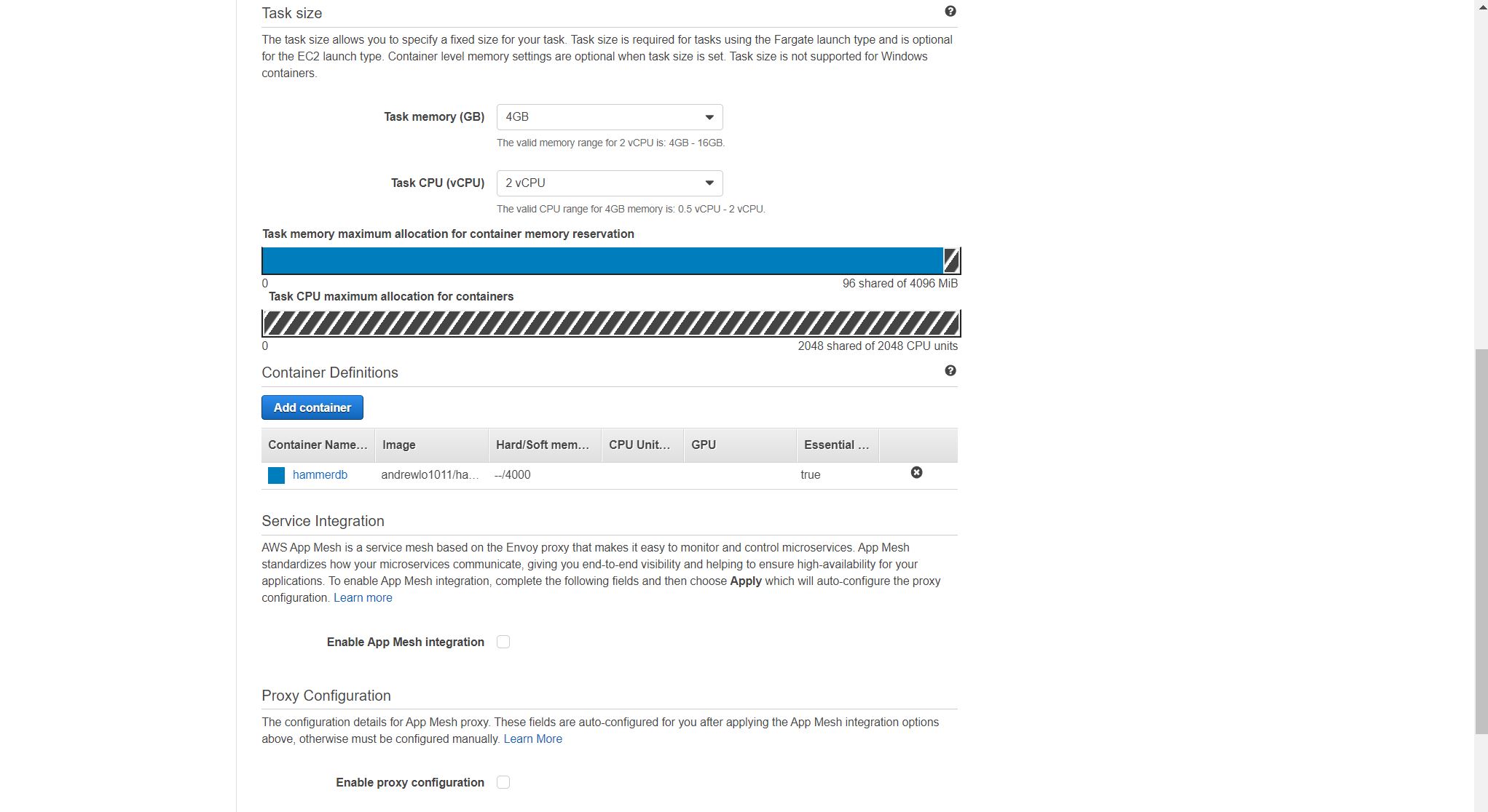 Create Task and Container definition