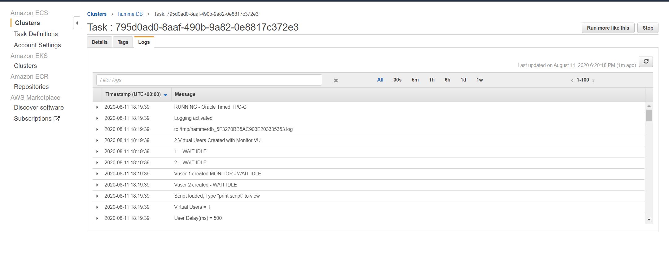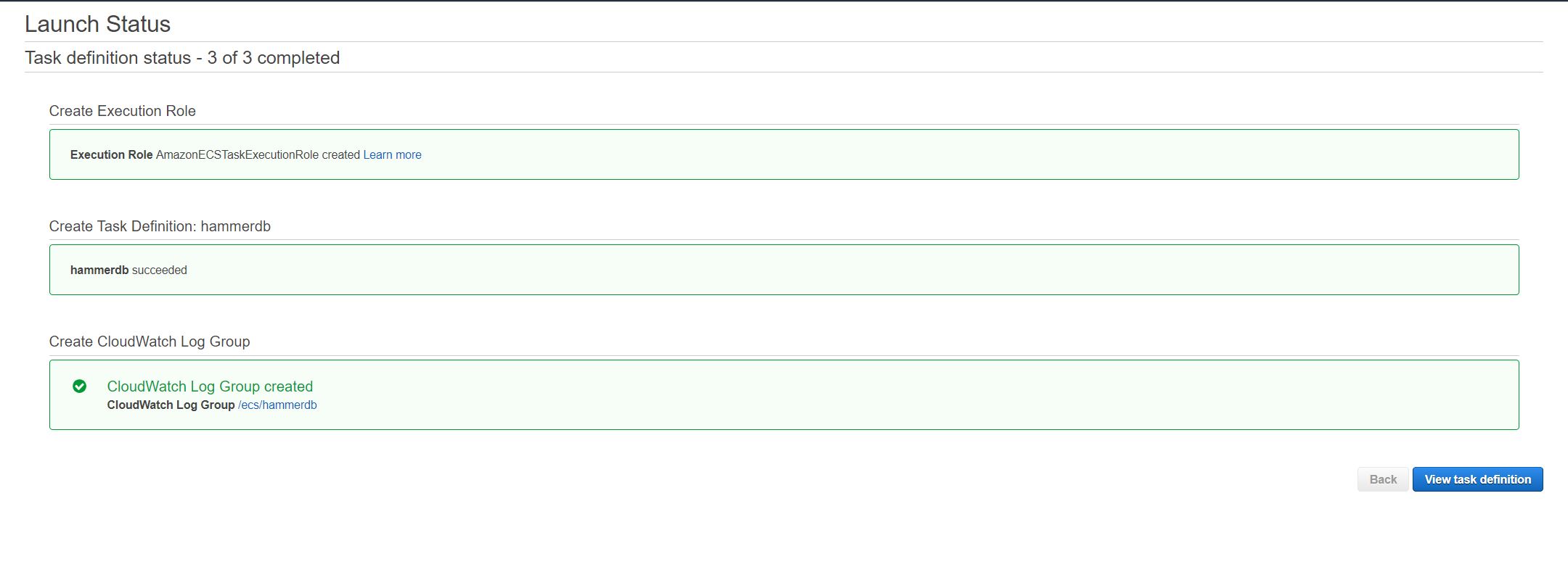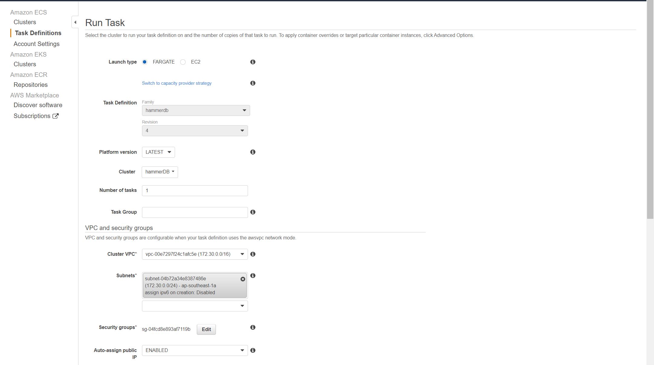 Run the hammerdb Task definition