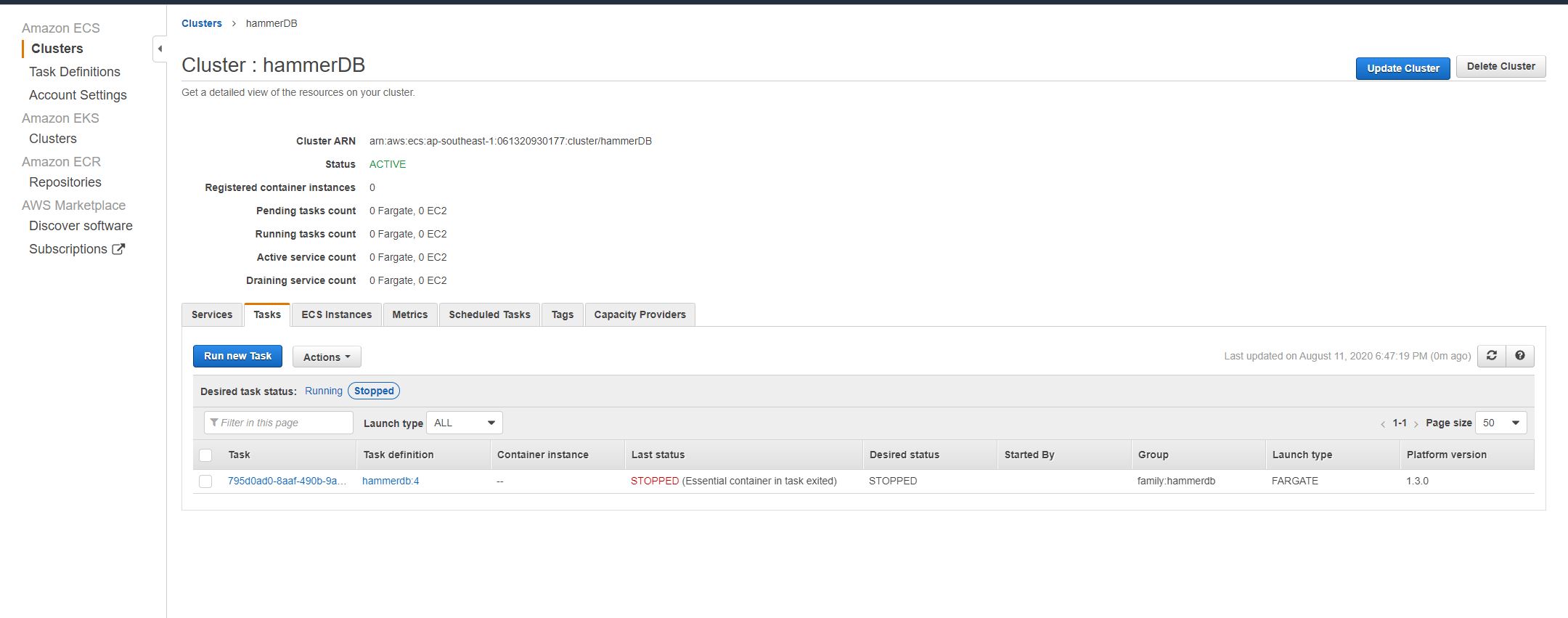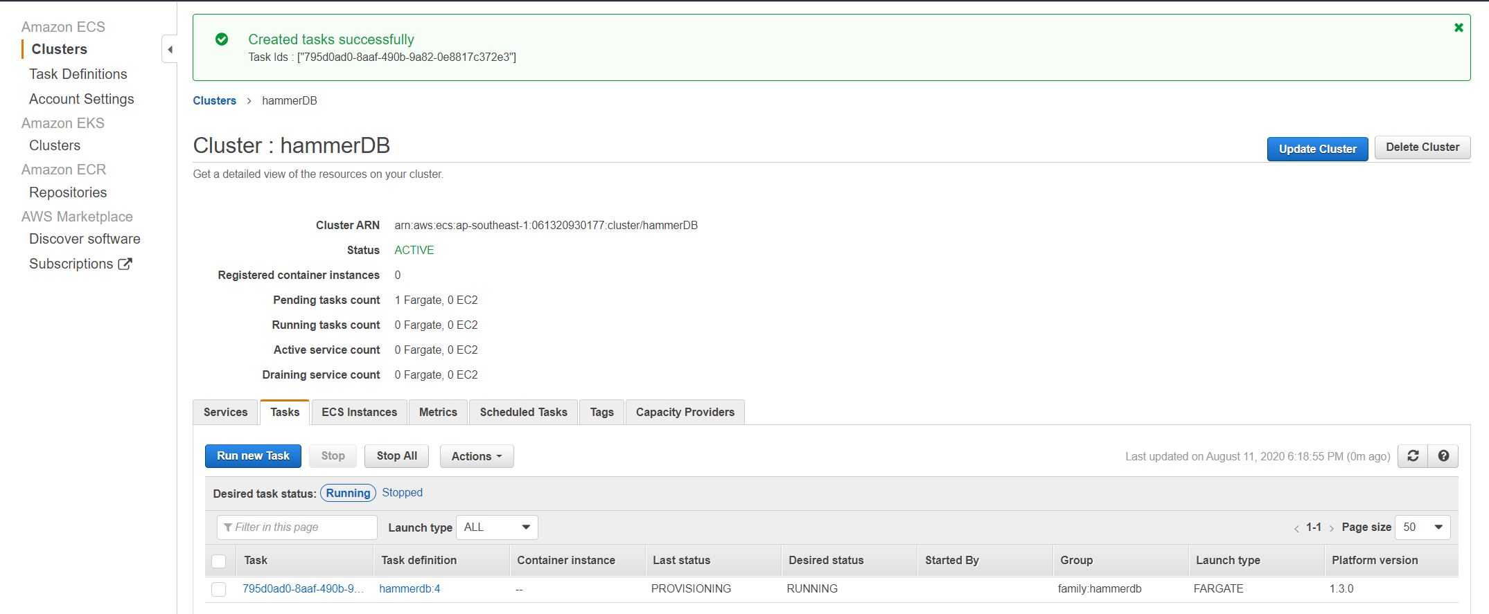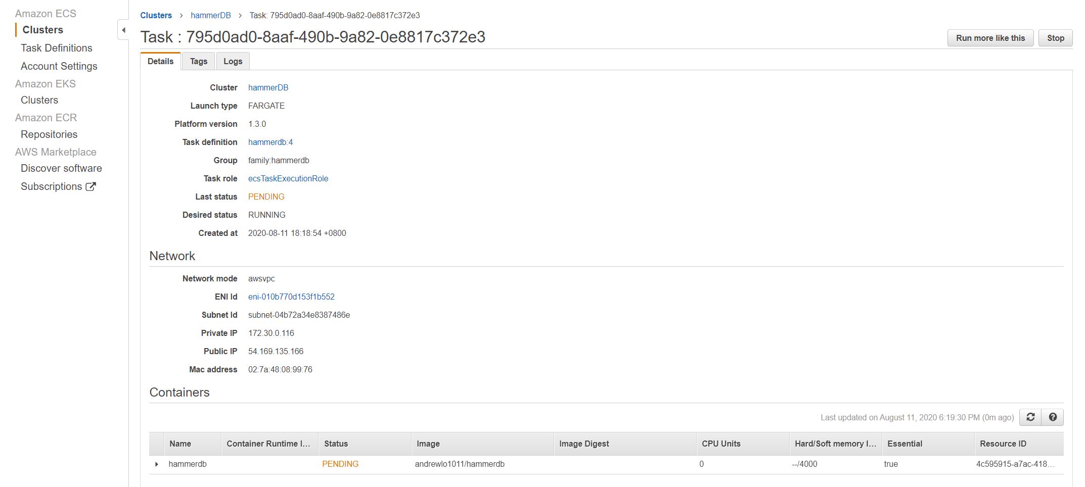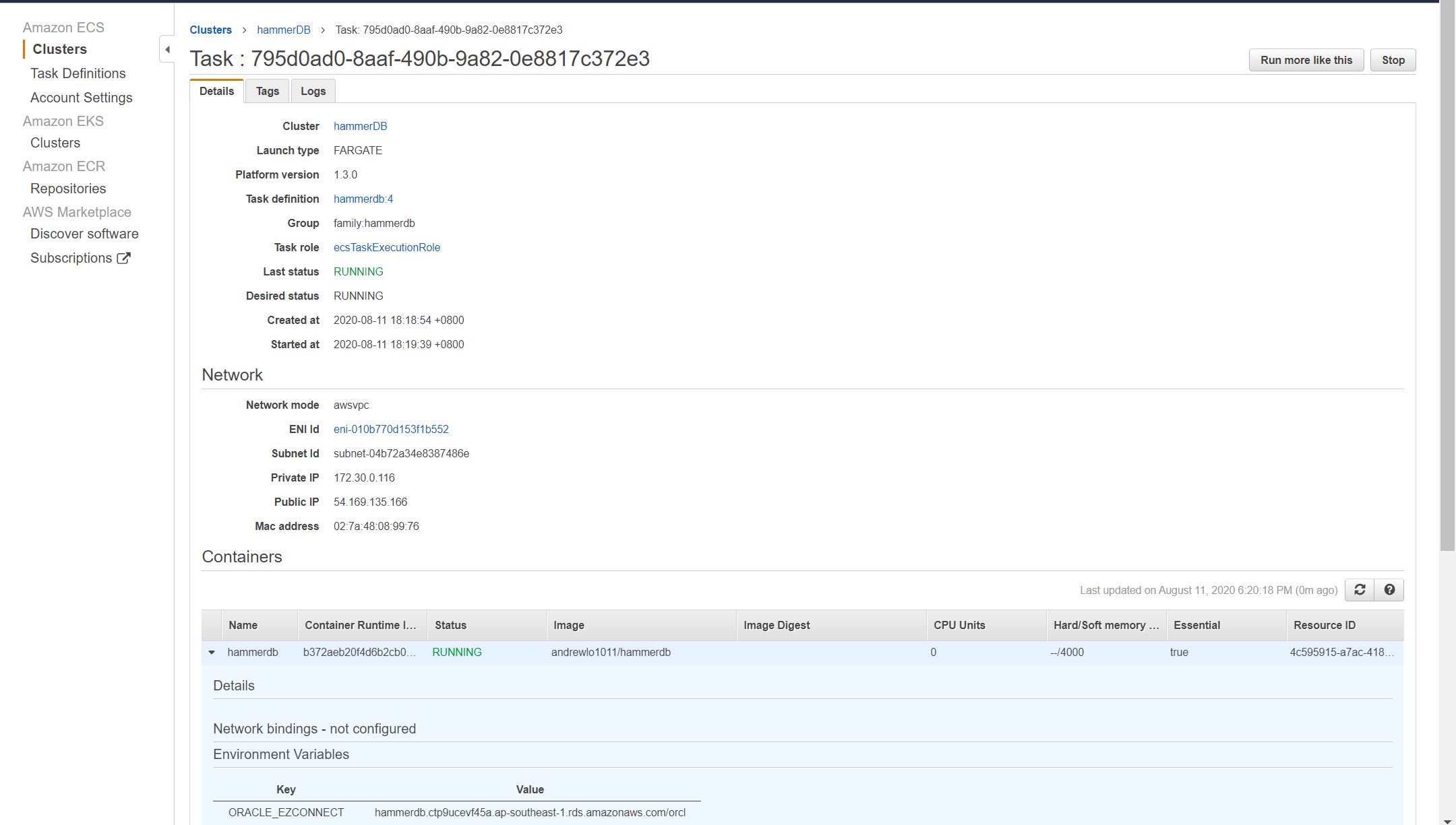 Run the hammerdb Task definition
