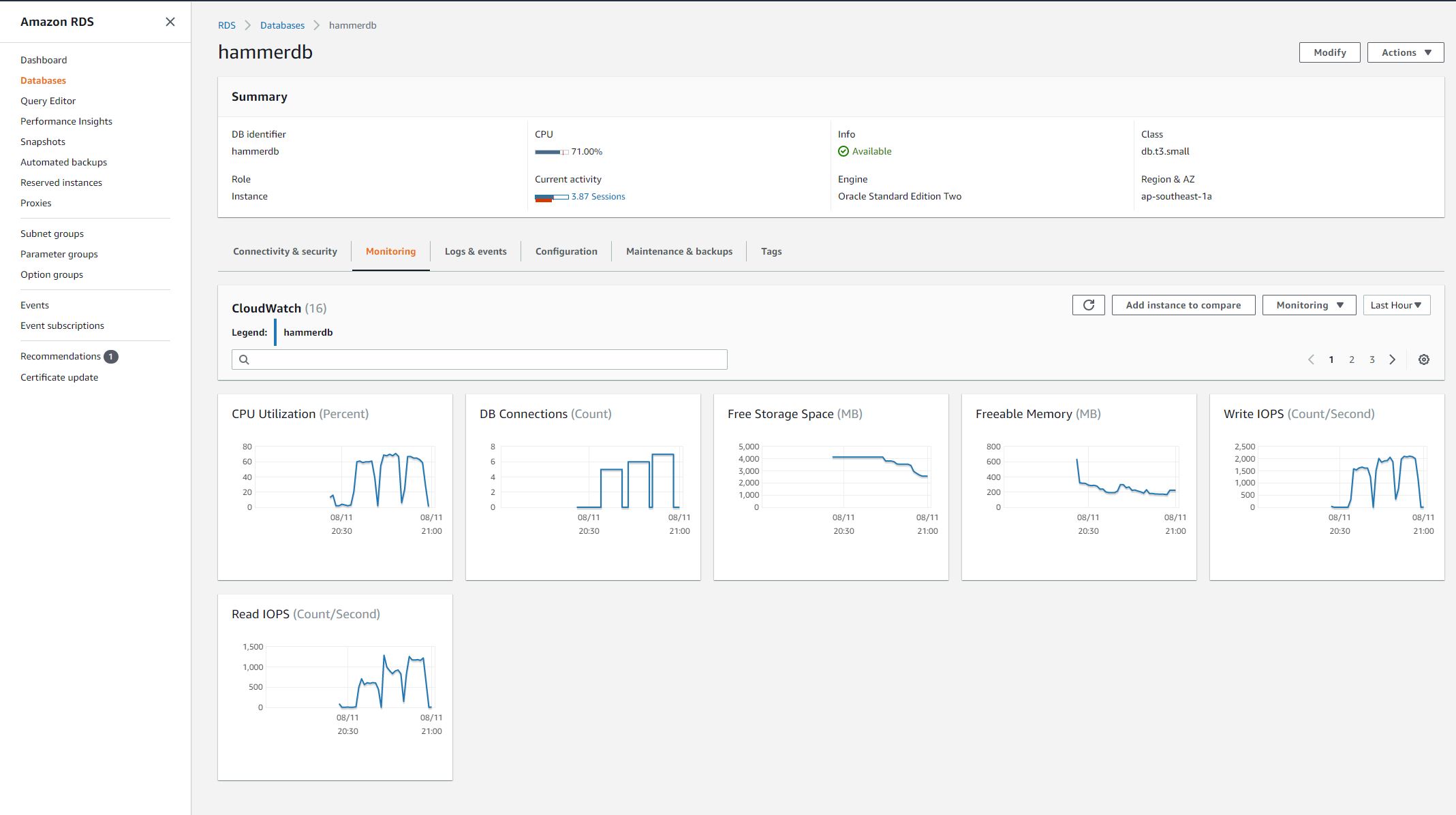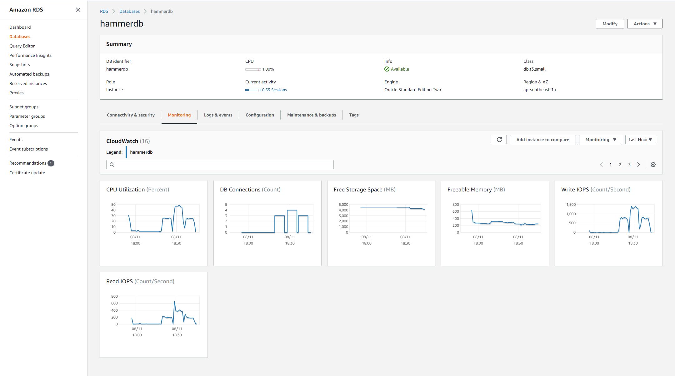 P.S. The step to create the testing RDS Oracle database is not included here. Also the HammerDB user creation and warehouse build in the database also not included here.