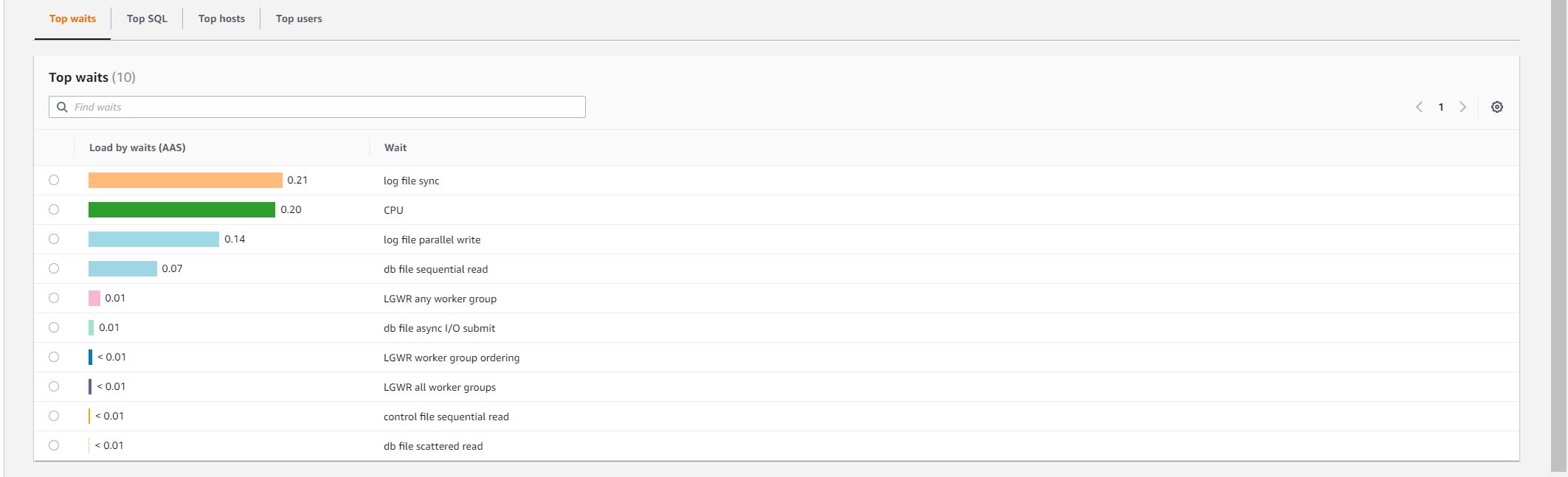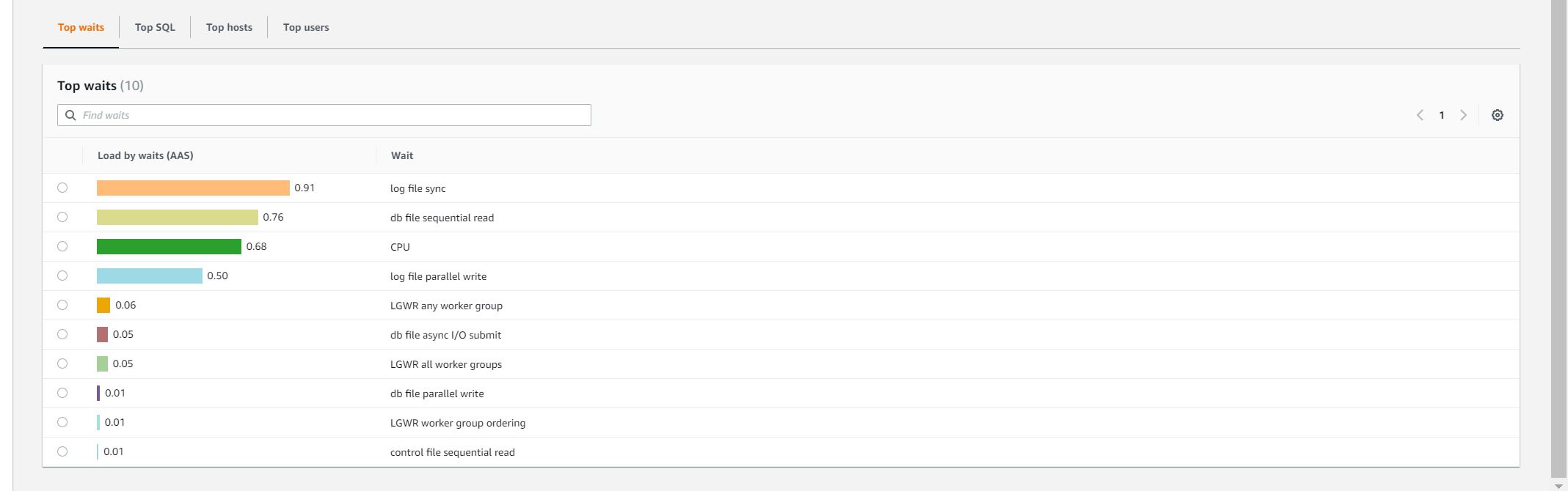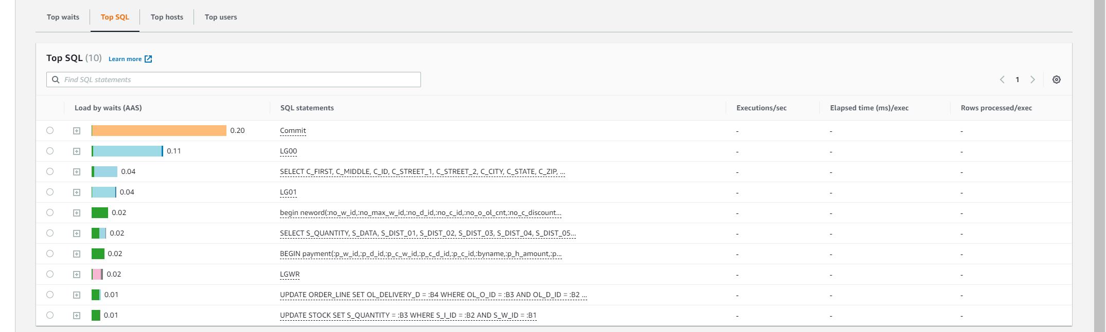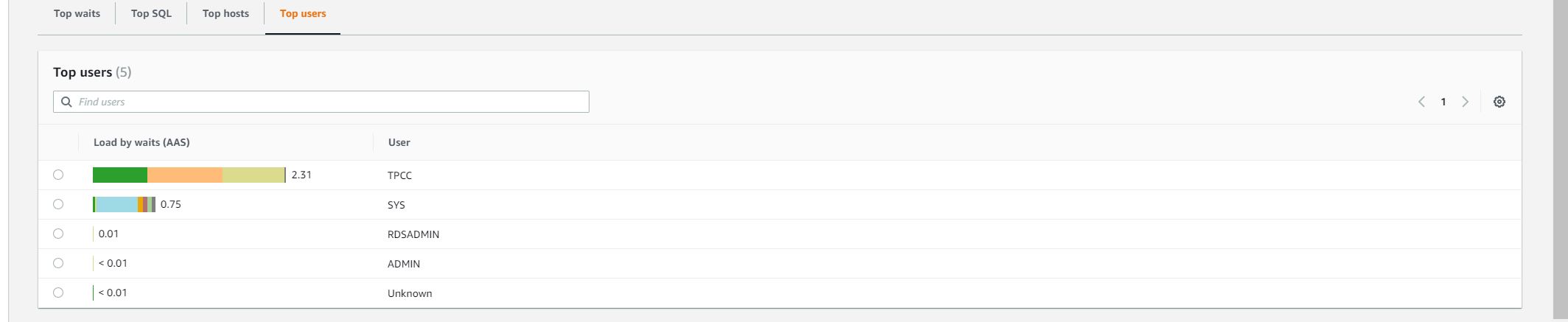 The round 1 test was executed with 1, 2, 3 virtual users respectively. However, after review the database statistic for 3 virtual users, I found that the database loading was a bit low. After review, I found that load.tcl has an typo for the 3rd part of the test, it was set to 1 virtual user.