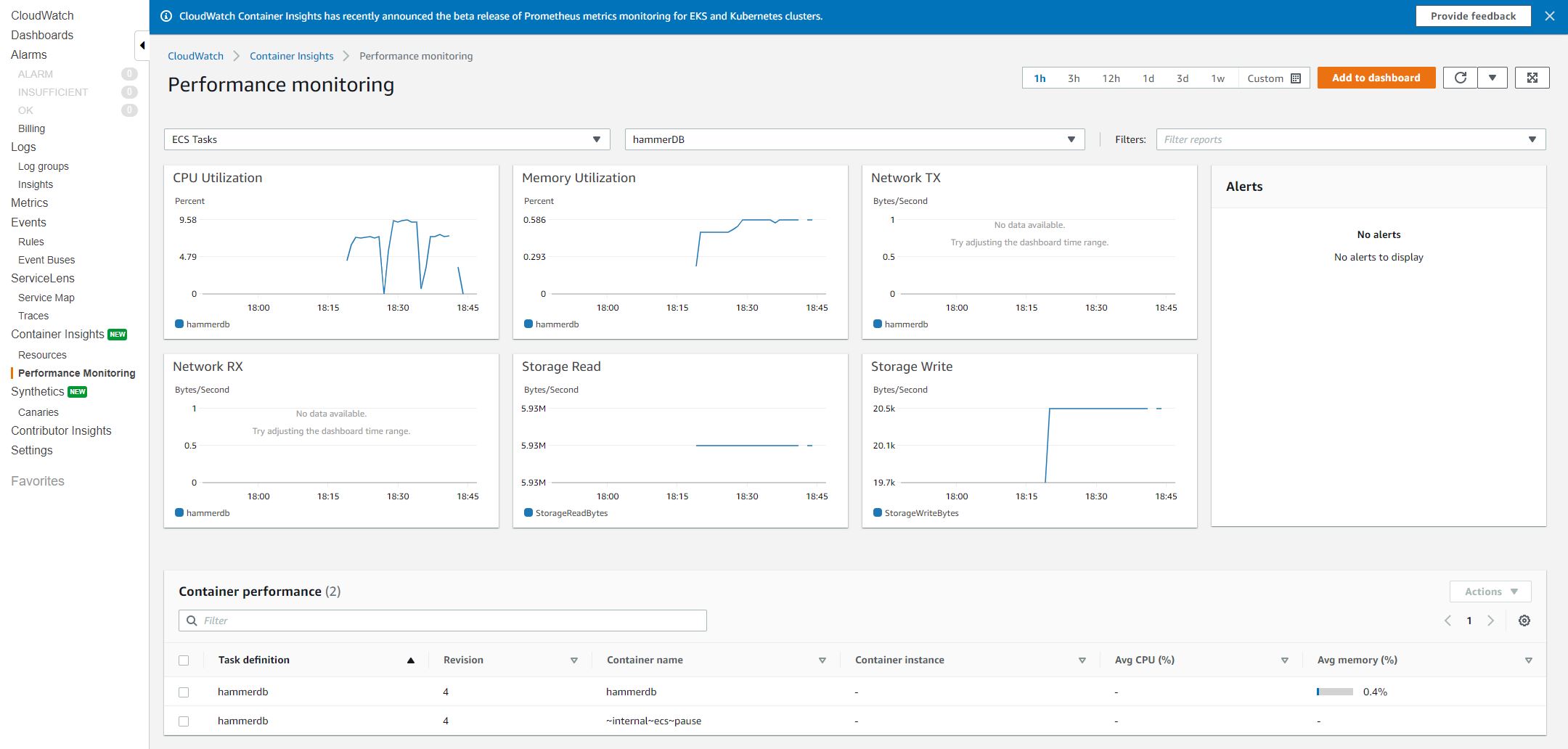 Enable Container Insights for CPU usage monitoring.