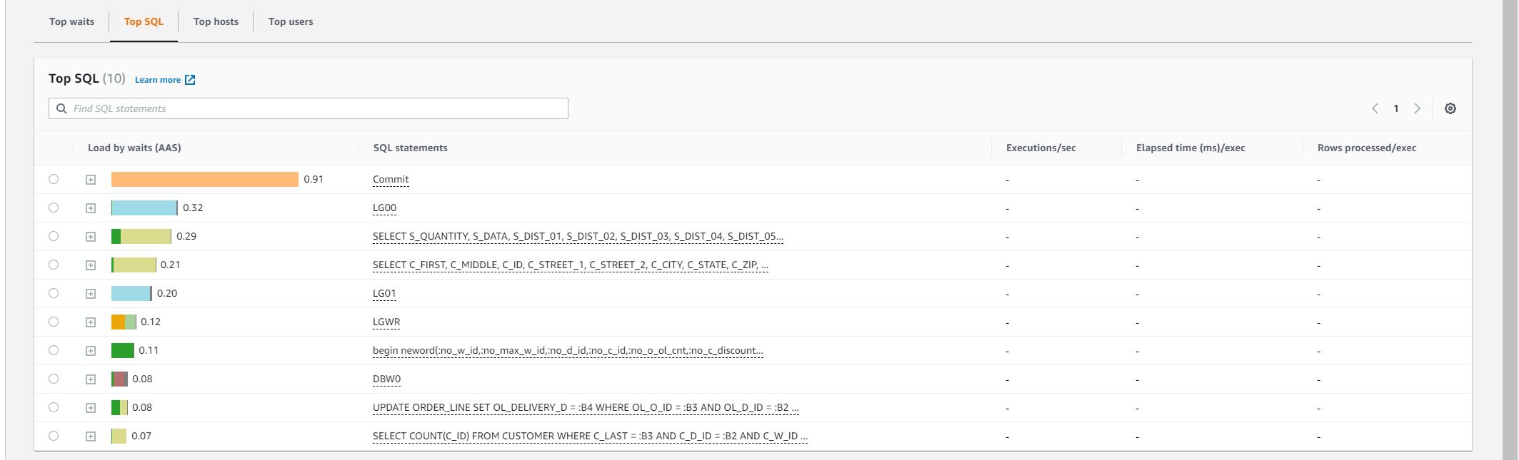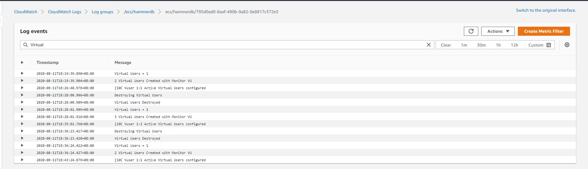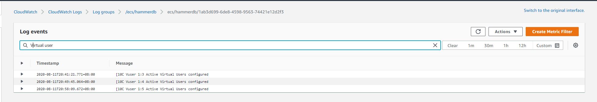 I fixed the load.tcl script and increased the virtual users in the script. I rebuilt the image and push to docker hub again. The round 2 test was executed with 3, 4, 5 virtual users It seems that the current RDS sizing the performance was saturated at 3 virtual users.