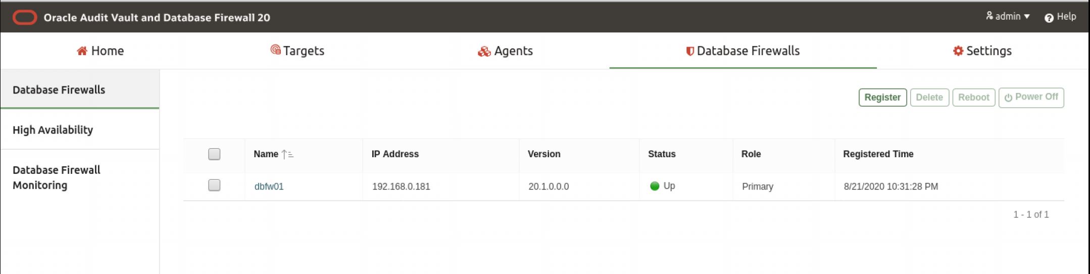Oracle Database Firewall supports an Oracle Audit Vault Agent that only monitors and is deployed by the Oracle Audit Vault server. This deployment option provides more flexibility in terms of monitoring at the network point. Using the Monitoring (Host Monitor) mode is helpful in situations where it is not easy to use any of the previously described Oracle Audit Vault and Database Firewall networking options.