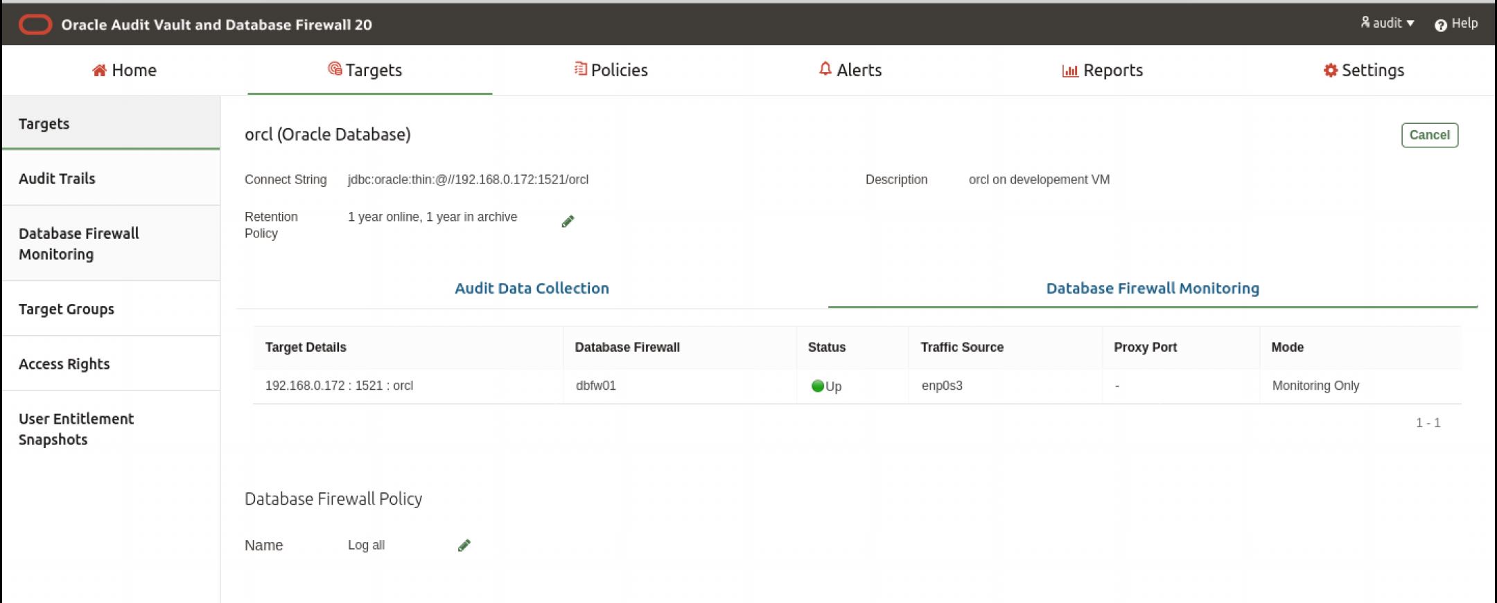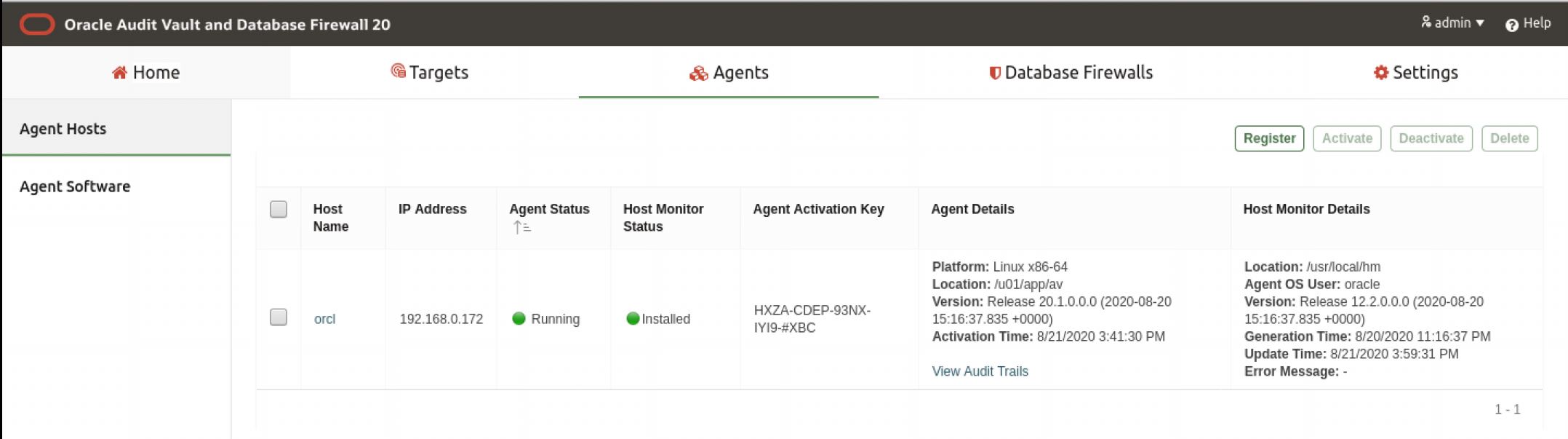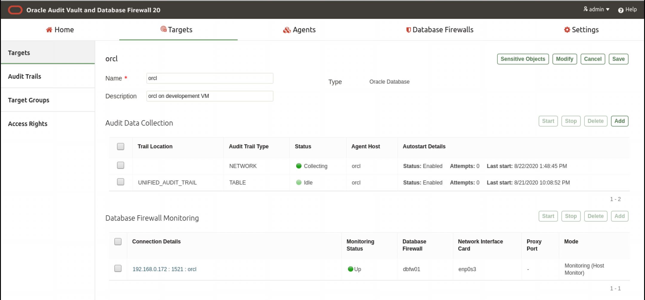 Oracle Audit Vault Agent and Host Monitor was installed and running in the Oracle Developer VM