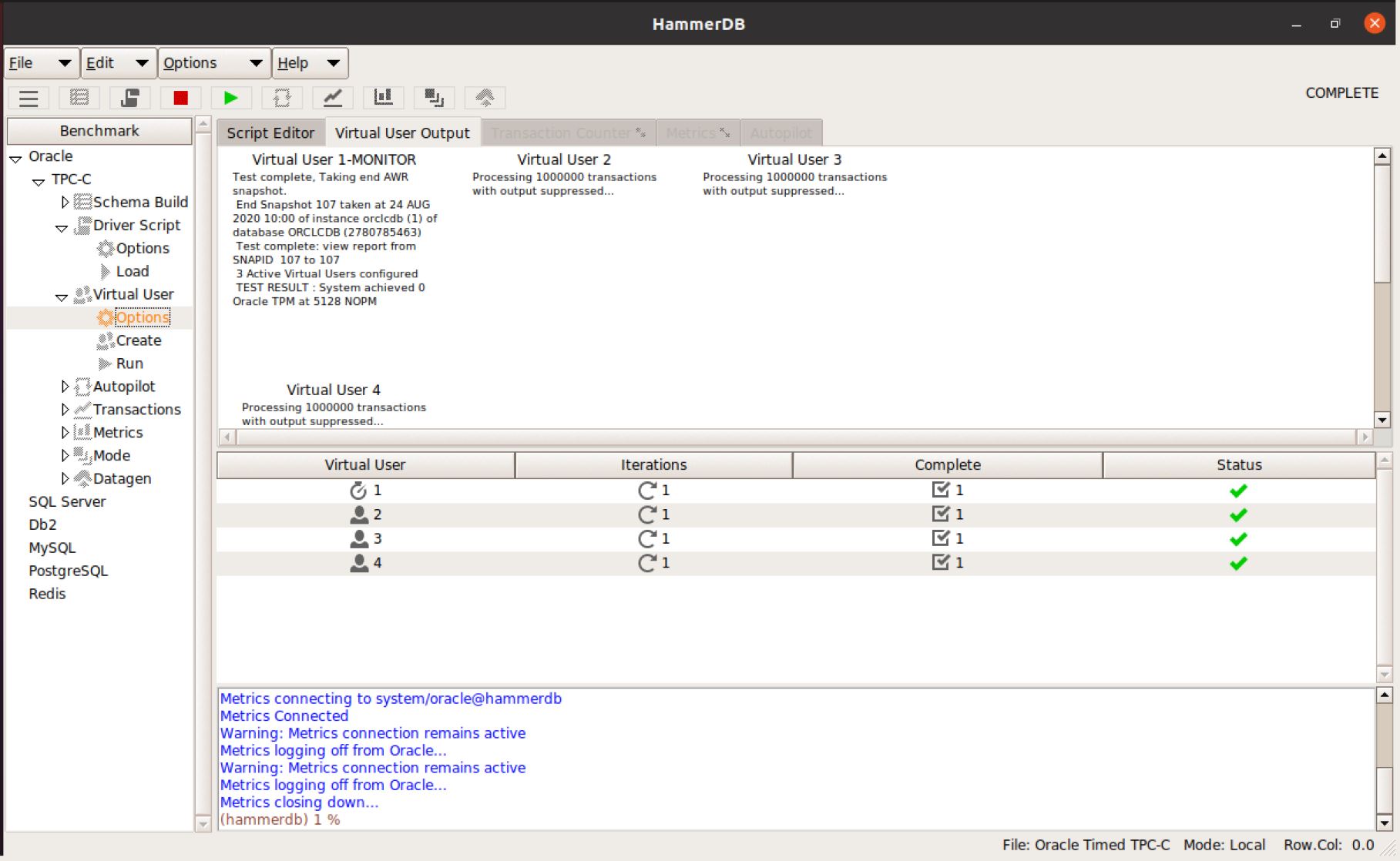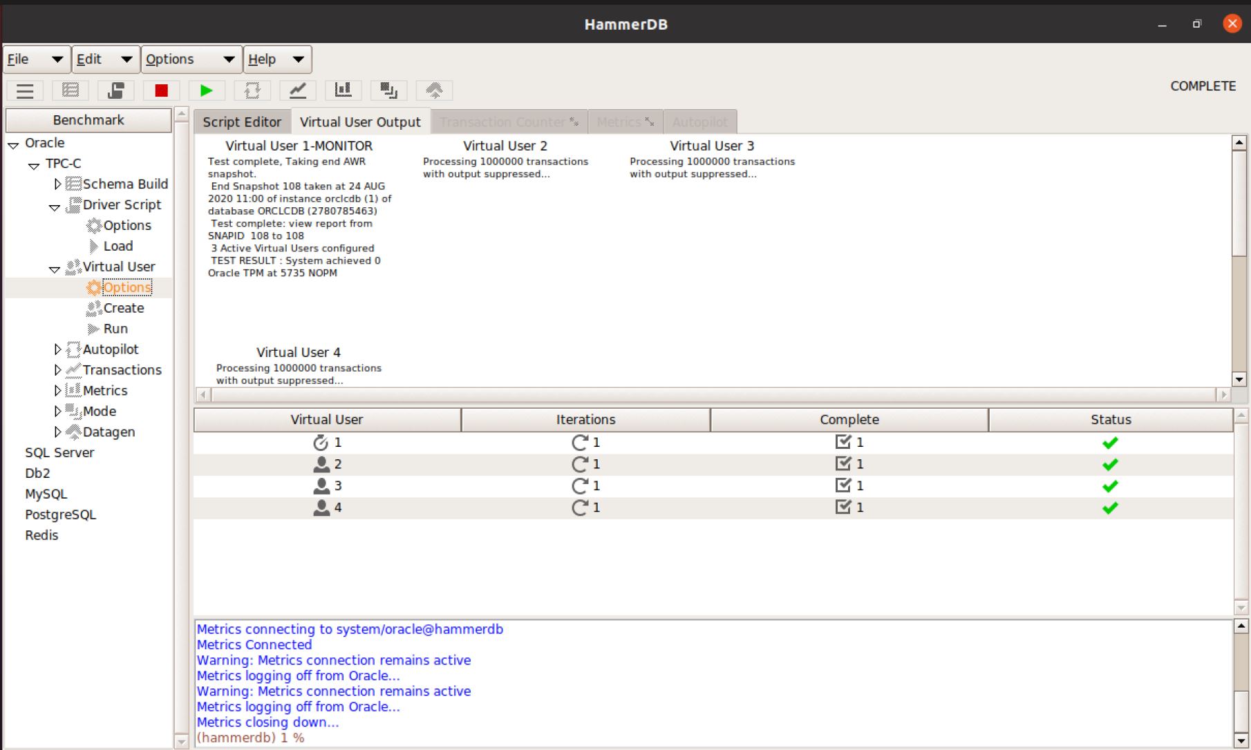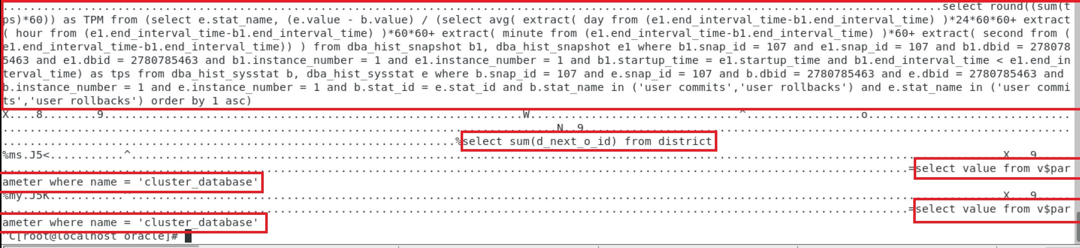 The following were the result captured for one of the HammerDB performance test. Only few SQL captured under user tpcc, which was the user for HammerDB.