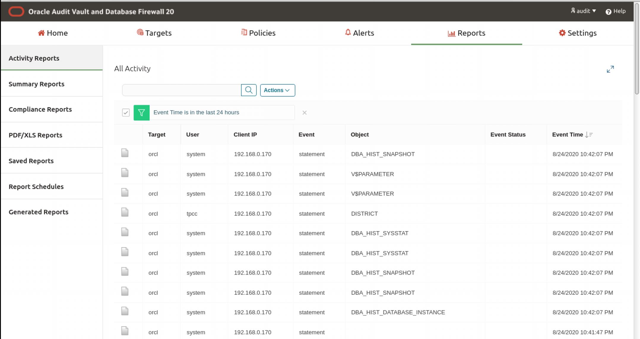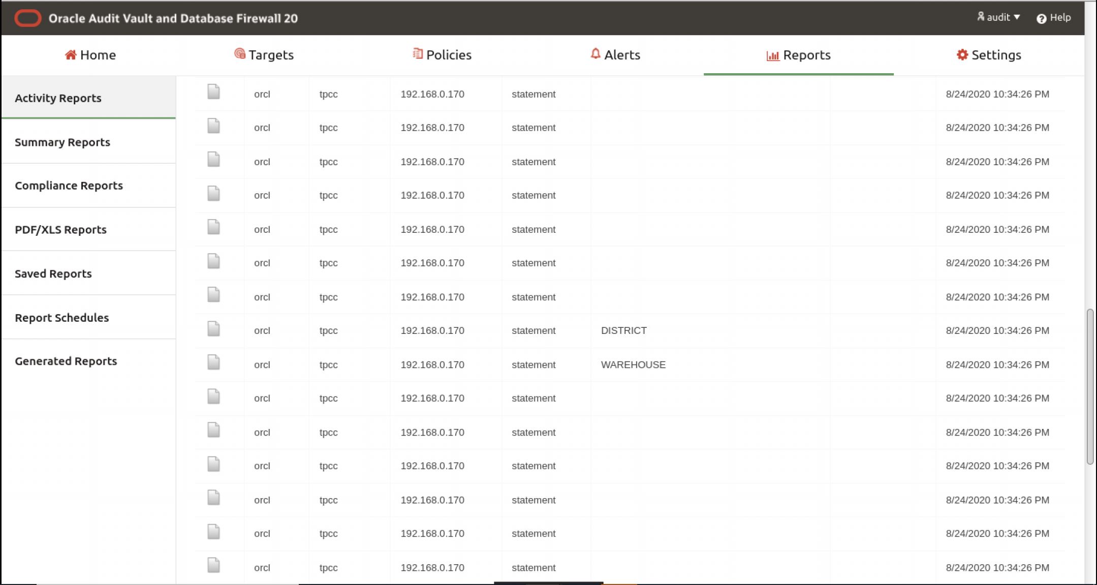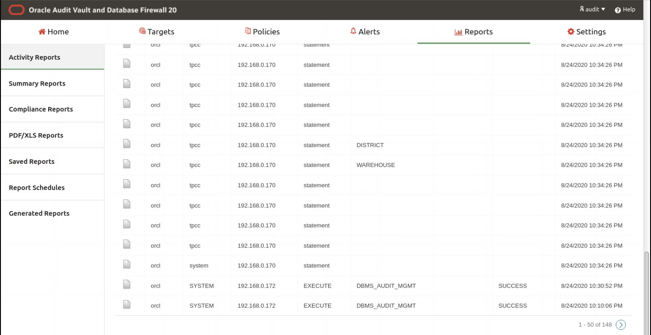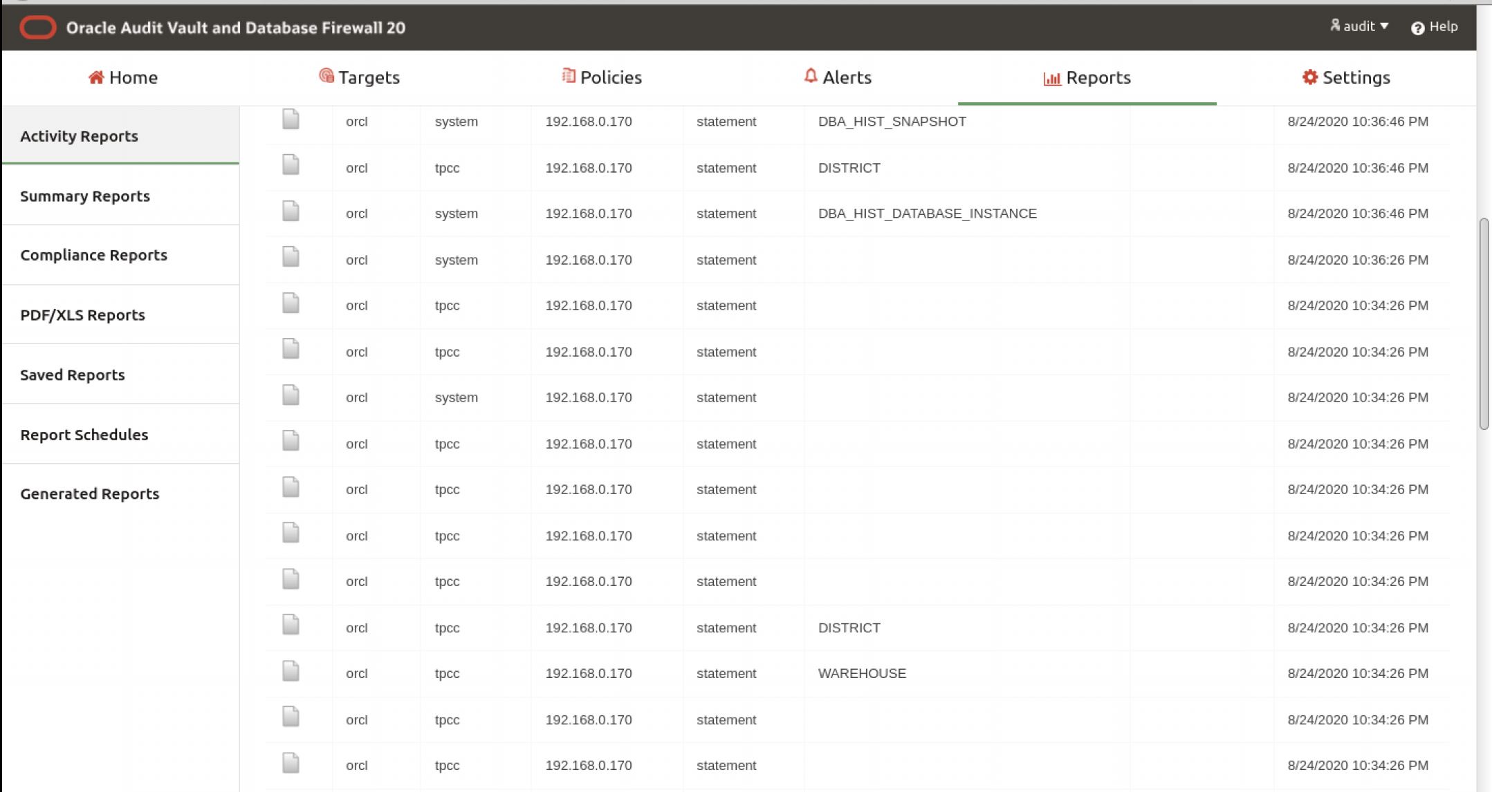 To test Oracle AVDF and evaluate the performance impact of DAM, we setup Oracle Audit Vault Agent and Host Monitor in the Oracle Development VM Virtual Box image. Oracle Audit Vault and Database Firewall also installed before the performance testing.