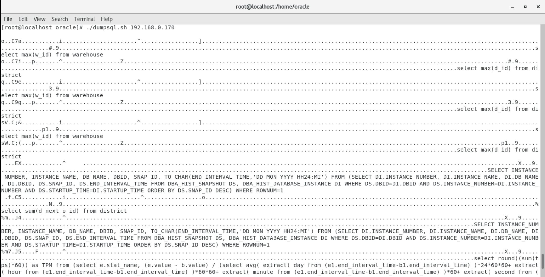 In order to understand what was happened, we ran a tcpdump to capture network traffic when we ran the HammerDB performance test, the script could capture select statements from the network traffic.